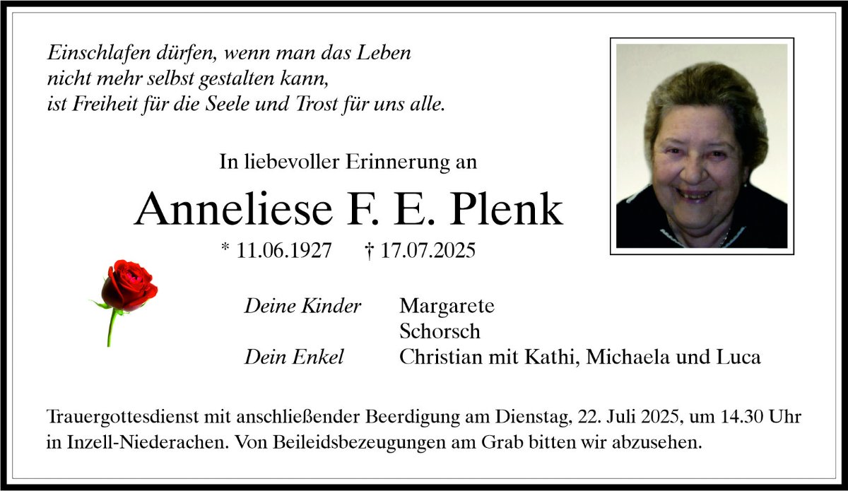 in dieser Zeit des Schmerzes wünschen wir Ihnen Kraft, den Verlust im Kreise Ihrer Liebsten zu verarbeiten. Als Zeichen unserer Anteilnahme und des Gedenkens entzünden wir dieses erste Licht. Möge diese Gedenkseite Ihnen helfen, Erinnerungen zu teilen und so das Andenken gemeinsam wachzuhalten.