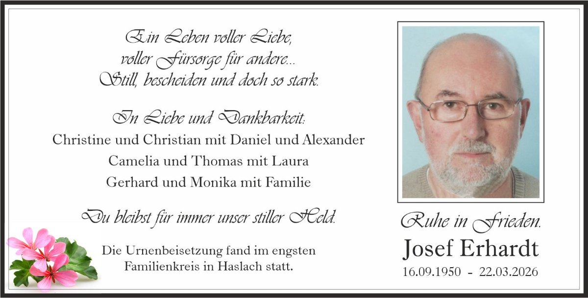 wir wünschen Ihnen für die kommende Zeit viel Kraft und dass es Ihnen gelingt, dankbar auf die positiven Erinnerungen zurückzublicken. Diese Gedenkseite möge Ihnen dabei helfen, Ihre Trauer zu teilen und das Andenken gemeinsam wachzuhalten.